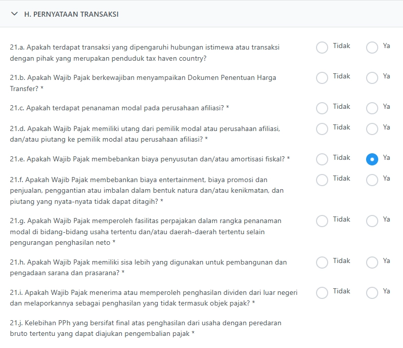 Karena halaman ini tugasnya membuka lampiran mana saja yang harus Anda isi, pastikan semua pertanyaan Ya dan Tidak sudah Anda jawab ya!