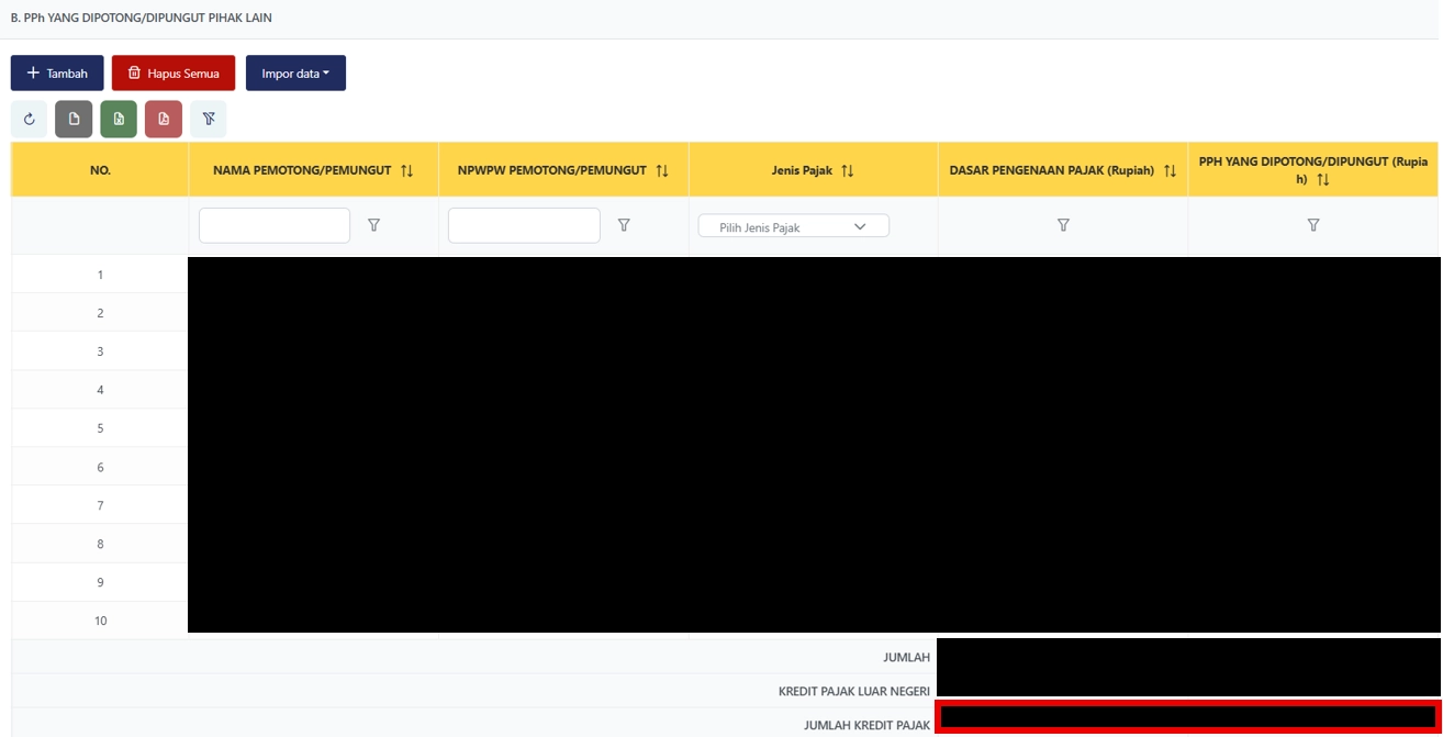 Misalnya untuk Lampiran 3 tentang Daftar PPh yang Dipotong / Dipungut Oleh Pihak Lain.