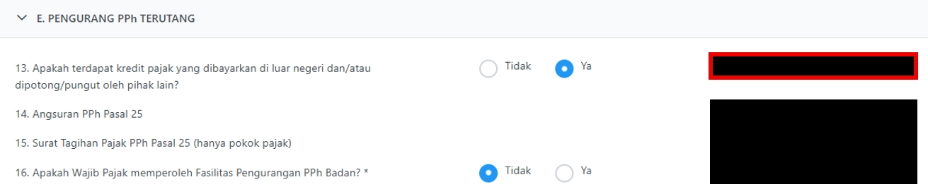Jumlah Kredit Pajak yang diberi kotak merah akan dipindah ke Bagian E (Pengurang PPh Terutang) di halaman induk.