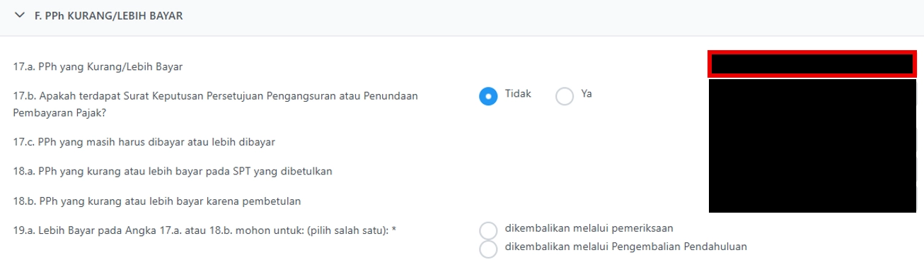 #4: Cek jumlah PPh Kurang / Lebih Bayar di Bagian F Halaman Induk