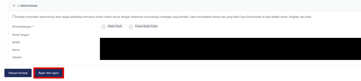 Sekarang Anda sudah bisa klik tombol Bayar dan Lapor di akhir formulir.