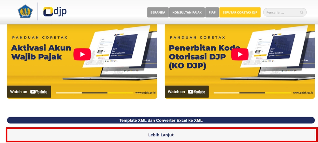 Scroll halaman sampai muncul tulisan Template XML dan Converter Excel ke XML. Klik tombol Lebih Lanjut.
