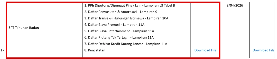 Cari template untuk SPT Tahunan Badan. Bagian ini baru saja diperbarui, jadi sekarang Anda cukup download satu folder yang berisi semua keperluan impor data.