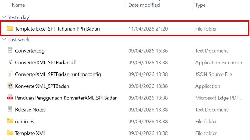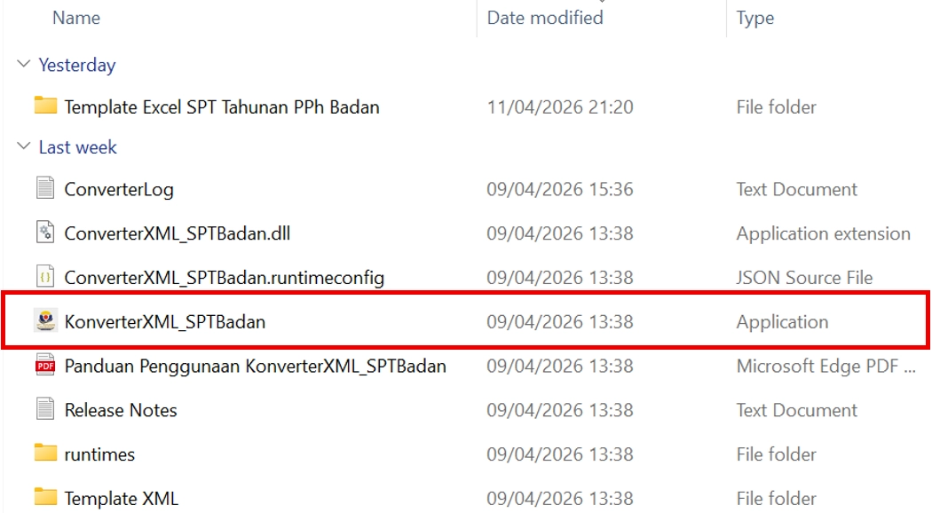 Buka hasil download dari website pajak.go.id tadi. Cari dan buka file yang berjudul KonverterXML_SPTBadan.