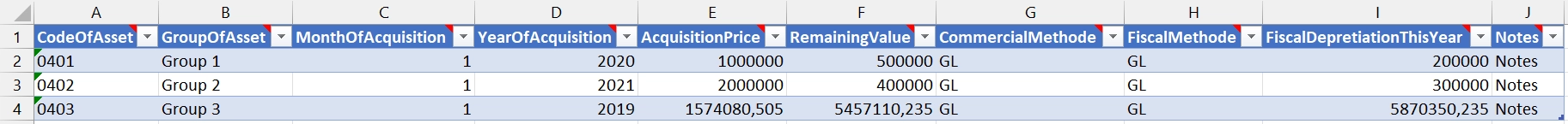 Di bagian atas L9, ada tombol Impor Data. Tombol ini mewakili seluruh kelompok penyusutan dan amortisasi.
