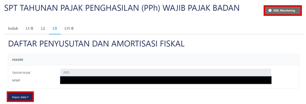 File XML siap diimpor! Saatnya Anda login ke Coretax dan masuk ke halaman L9 di SPT Tahunan Badan Anda.