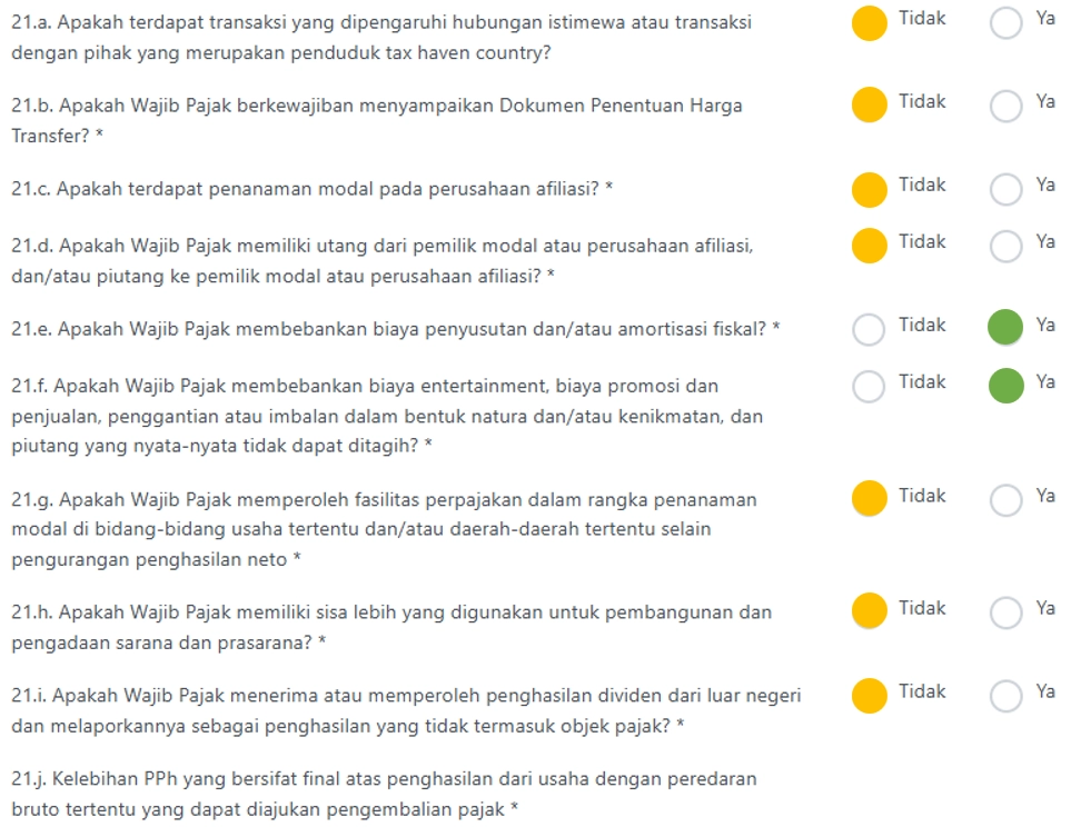 Kalau di laporan keuangan Anda ada biaya sesuai nomor 21e dan 21f, Anda bisa jawab Ya.